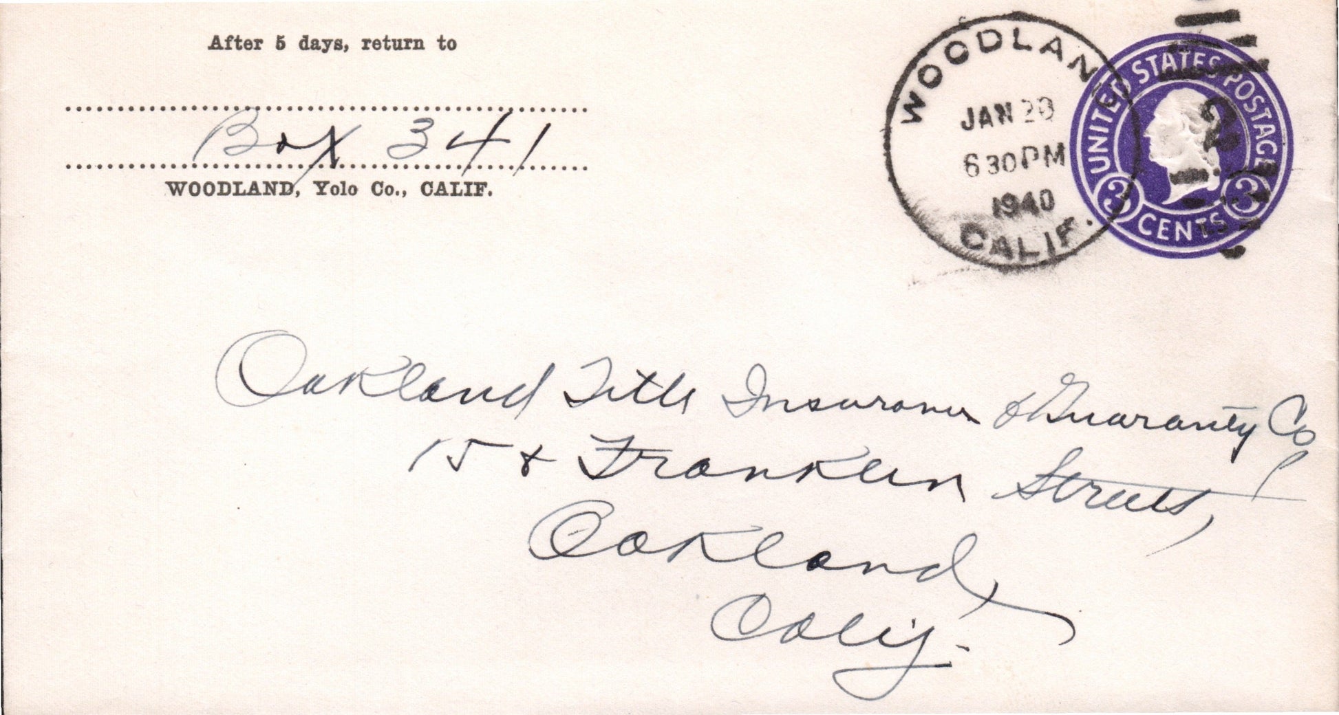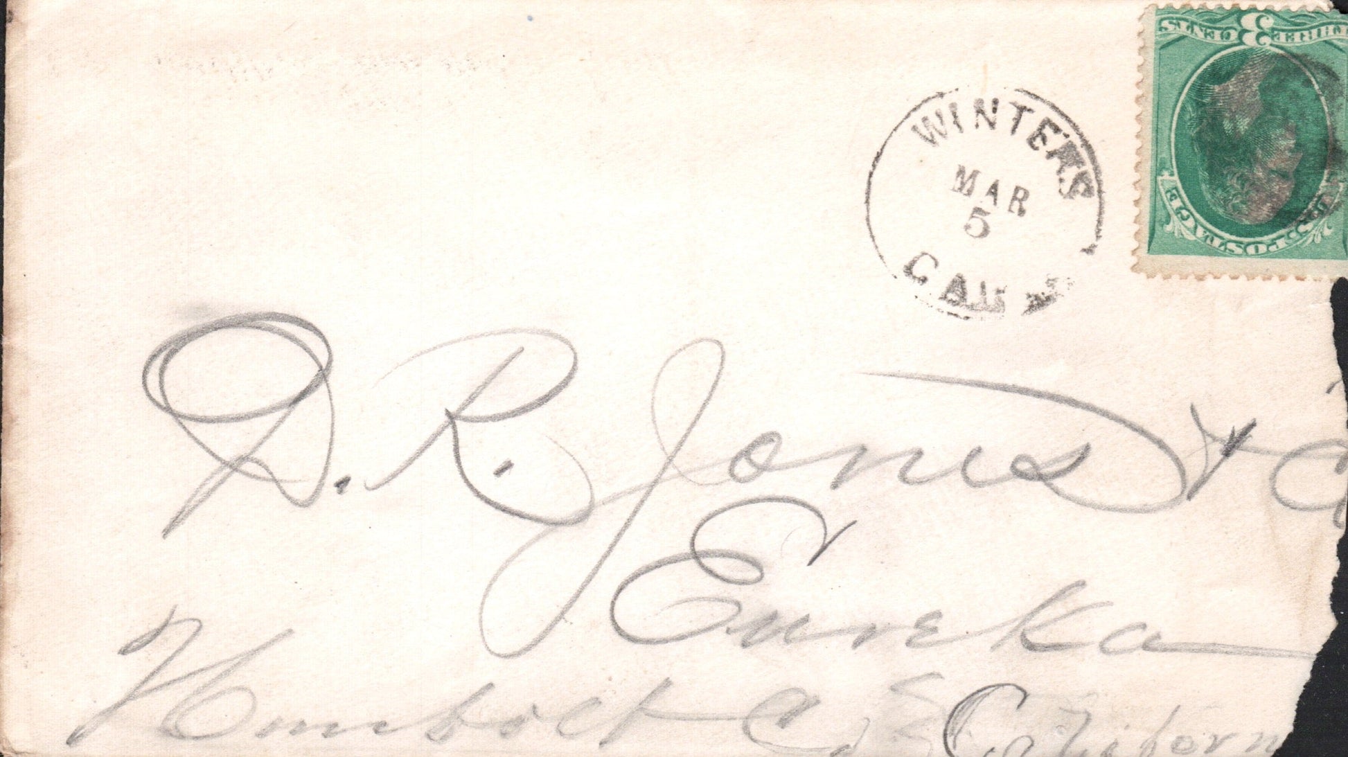Winters 1883 cds on cover with original contents, a lumber order to Eureka; 1911 duplex on post card; poor 1960s roller postmark on cover